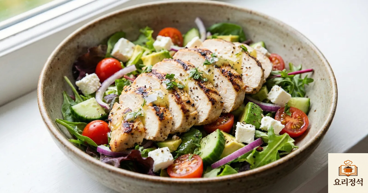안녕하세요. 식재료의 분자 구조적 변화를 통해 최적의 식감을 설계하는 요리정석입니다. 오늘 우리가 리모델링할 주제는 다이어트 식단의 대명사이자, 가장 많은 조리 실패를 경험하는 닭가슴살 샐러드입니다.
