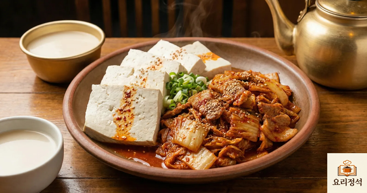 두부김치는 단순히 볶은 김치와 데친 두부를 곁들이는 요리가 아닙니다. 오래된 김치 속의 과도한 유기산을 어떻게 다스리느냐, 그리고 돼지고기 특유의 지방산 산패취를 어떻게 마스킹(Masking)하느냐가 요리의 격을 결정합니다. 본 포스팅에서는 2,500자 이상의 정밀 데이터를 통해, 신맛은 감칠맛으로 변환하고 고기의 풍미는 응축하는 조리 과학적 표준 공정을 정리해 드립니다.