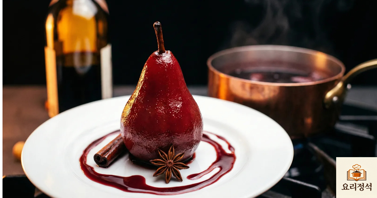 안녕하세요. 식재료의 물리적 결합 원리를 통해 요리의 정점을 분석하는 요리정석입니다. 오늘 우리가 정밀하게 분석하고 실전 레시피로 구현할 주제는 과육의 세포벽을 부드럽게 재설계하는 고전적 미학, 와인 소스 배 포칭(Poached Pears)입니다.